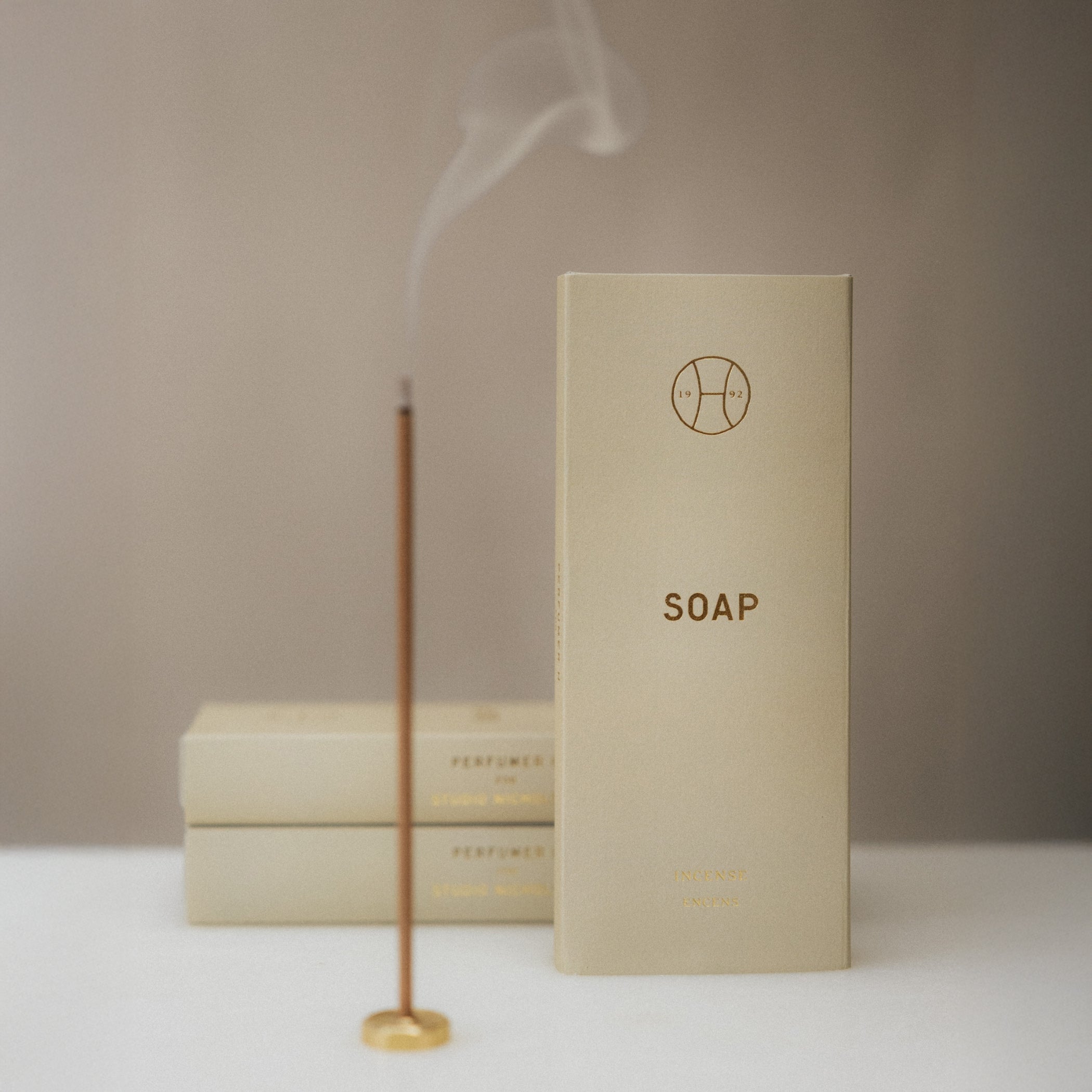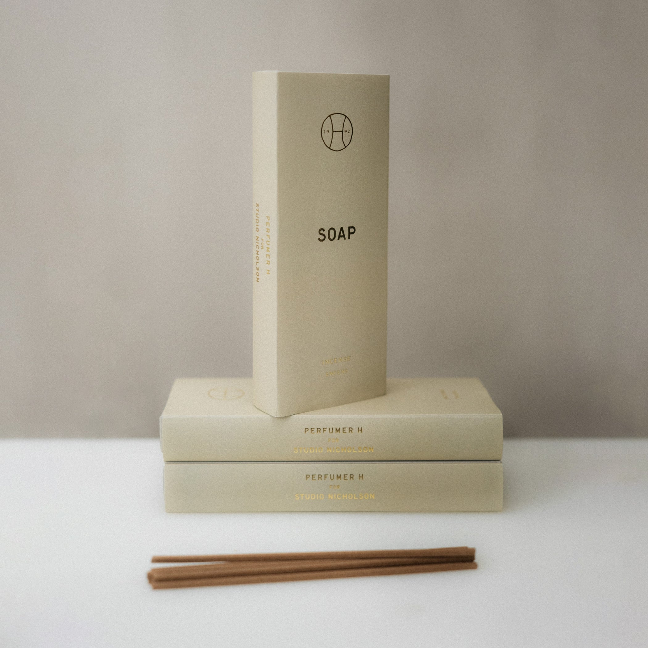 Echoing ancient rituals of perfuming garments with burning incense, Perfumer H presents SOAP incense in collaboration with Studio Nicholson.