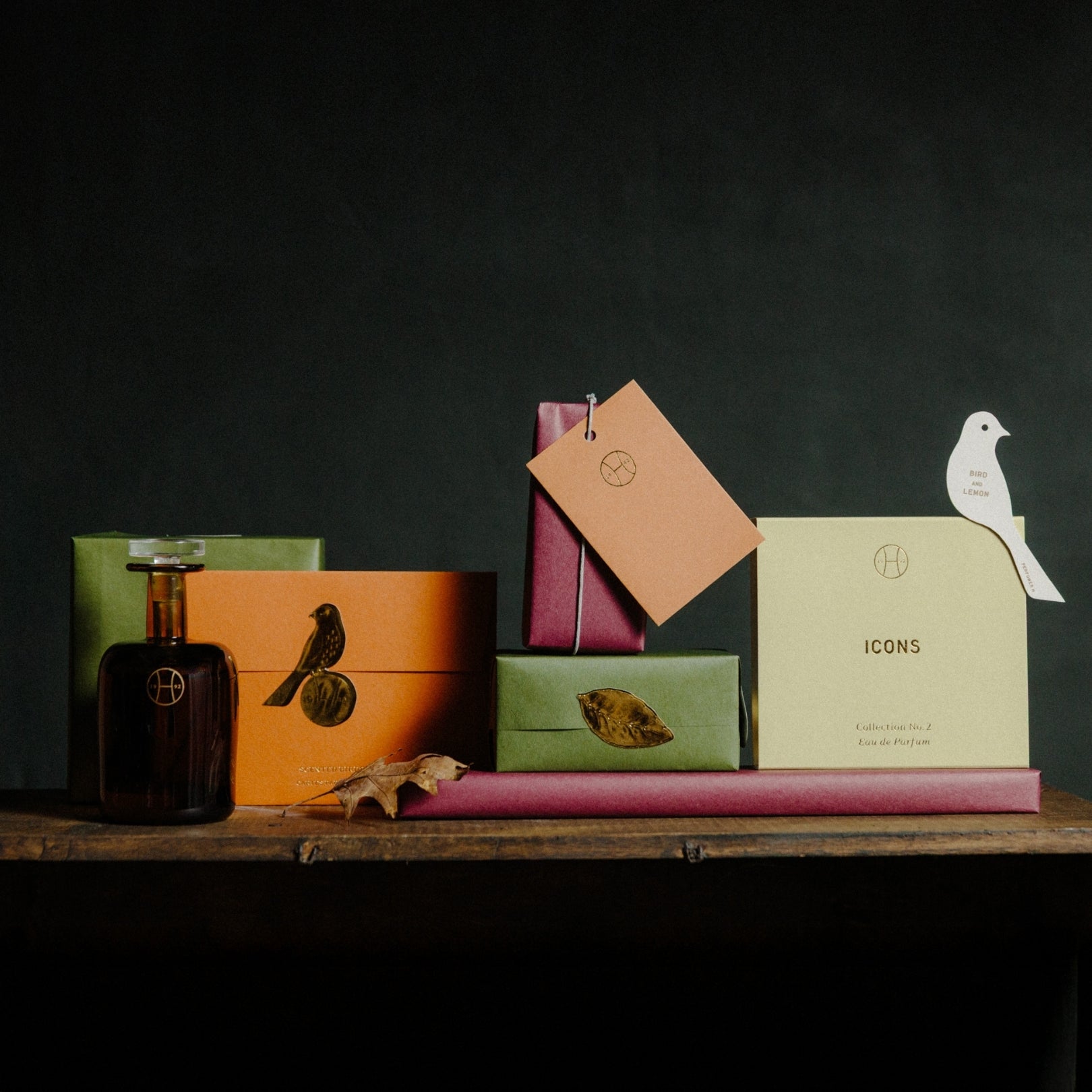 BIRD AND LEMON』では、ベルガモット、ミルラ、ホワイトグレープの豪華なアレンジメントが、若々しいシトラスの羽のように軽やかなひねりで持ち上げられている。太陽の光と薄暗い影が出会い、華やかさを遊び心で表現している。